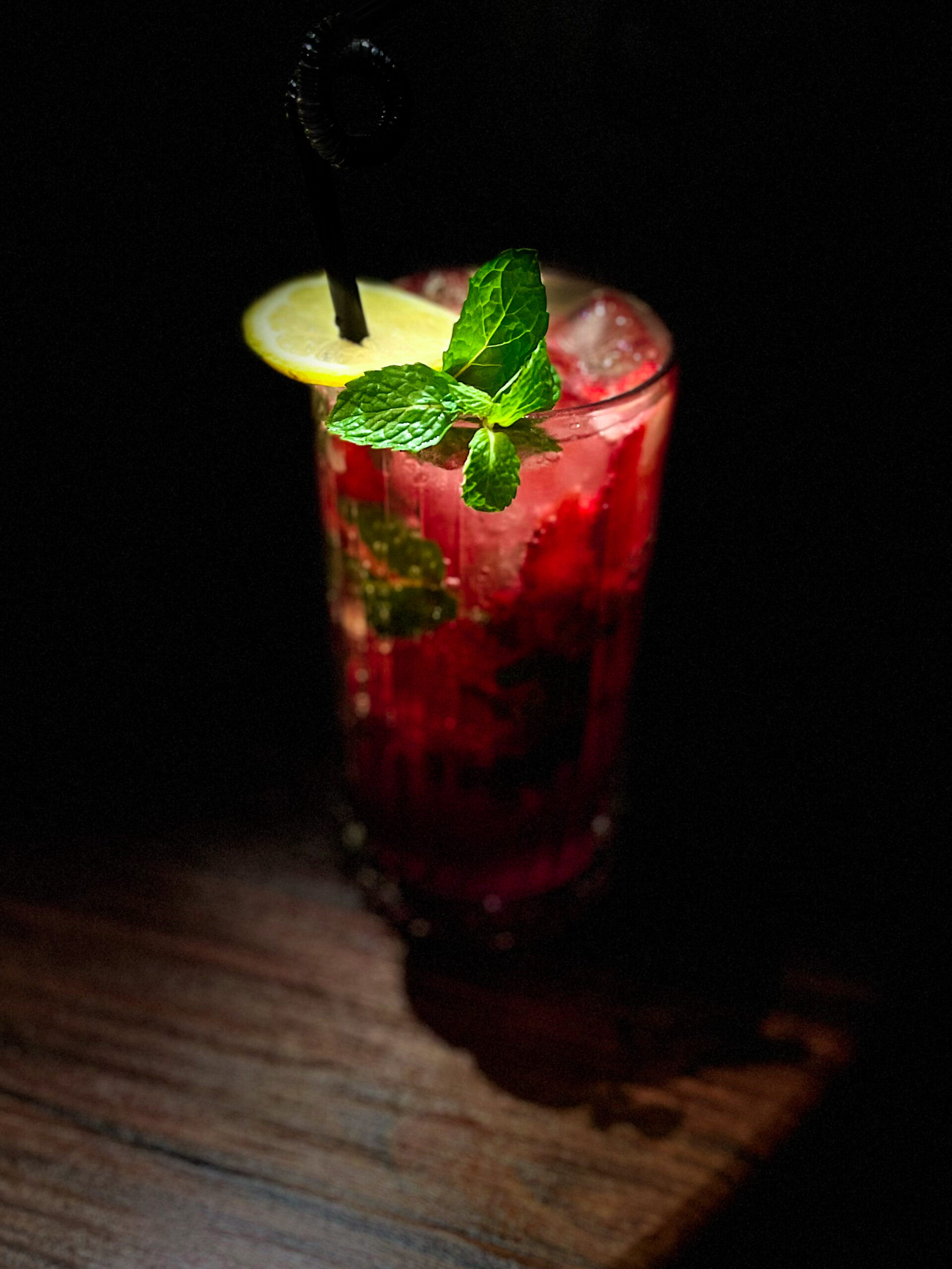 الوئه ورا+پرتقال+سیروپ توت فرنگی و تمشک+سودا